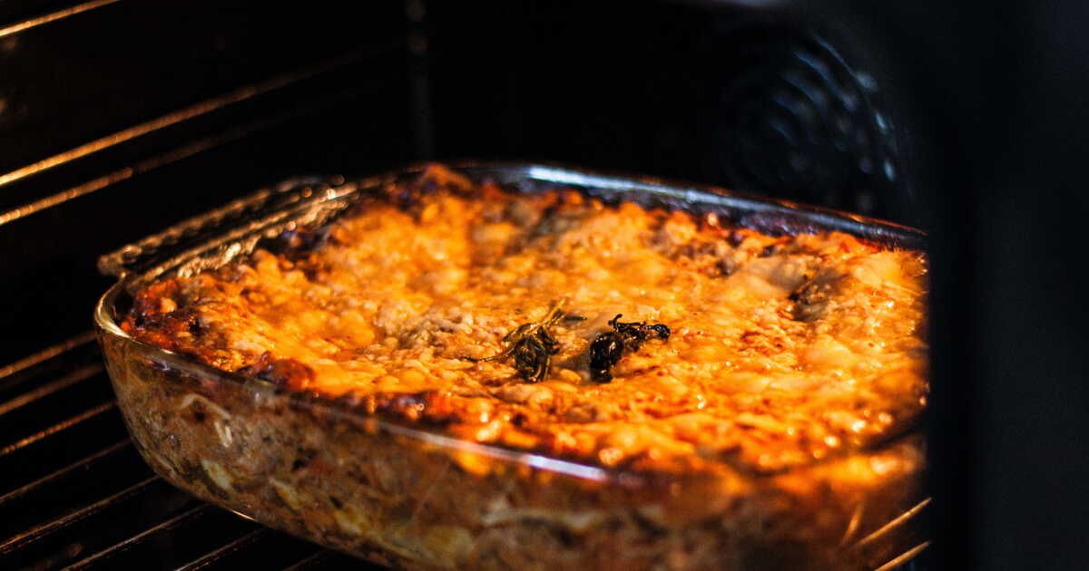 - Dans un plat à gratin huilé, disposez les pâtes, tassez bien et recouvrez avec le reste du fromage. Laissez cuire au four pendant 18 minutes.
