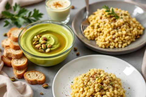 Alors que l'automne s'installe et que les températures commencent à baisser, rien n'est plus réconfortant que de se retrouver autour de plats généreux et colorés. La pistache se glisse aisément dans nos assiettes, apportant croquant et saveur. Sa belle teinte verte et ses arômes légèrement grillés évoquent des souvenirs de repas en famille, de goûters d’enfance et de voyages ensoleillés en Méditerranée. De l'entrée au dessert, elle illumine nos repas d'une touche festive et élégante. Voici trois recettes simples pour un menu complet autour de la pistache, à savourer sans hésitation, seul ou en bonne compagnie.