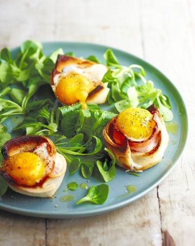 - Garniture : Enveloppez chaque ramequin de poitrine fumée, cassez-y un œuf, puis ajoutez une cuillère de crème fraîche.