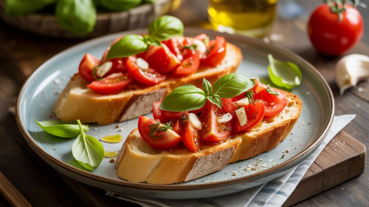 La bruschetta, symbole de la gastronomie italienne, allie simplicité et saveurs ensoleillées. Ces tartines croustillantes sont idéales pour une entrée estivale et imprègnent la cuisine française d’un goût authentique. Découvrez comment préparer cette recette intemporelle, simple mais délicieuse.