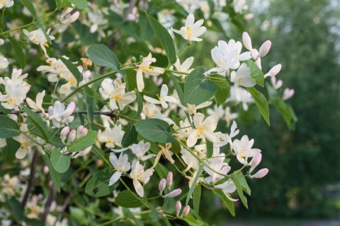 - Lonicera fragrantissima : offre un parfum sucré avec des feuilles semi-persistantes.
