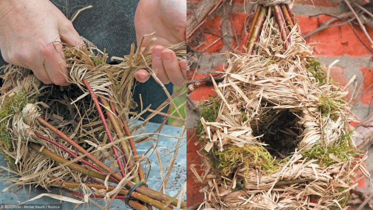 1. Rassemblez tous les matériaux indispensables : des branches d'osier ou de cornouiller d'au moins 80 cm de long, ainsi que du raphia et de la mousse.