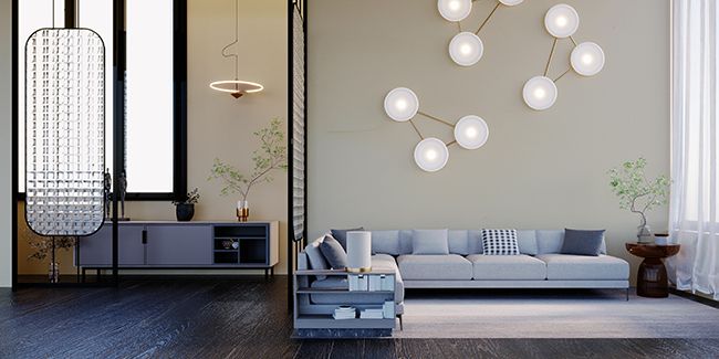 - Misez sur l'éclairage : Un luminaire suspendu au-dessus d'une table peut identifier un espace repas, tout en apportant une ambiance chaleureuse.