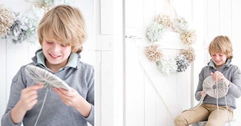 - Réalisez des pompons en enroulant la laine autour de vos doigts, puis coupez et attachez le centre.